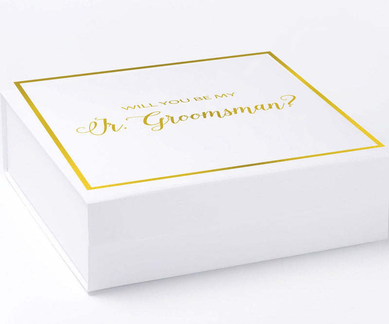 Will You Be My jr groomsman? Proposal Box White - Border - No ribbon
