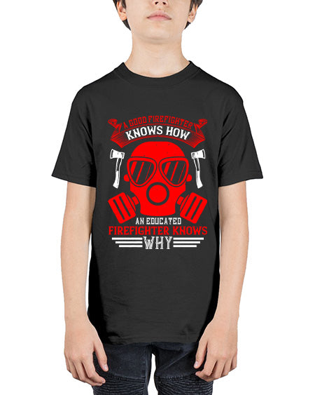 a good firefighter knows how an educated firefighter knows why 554# - fire fighter - Youth Tee Unisex
