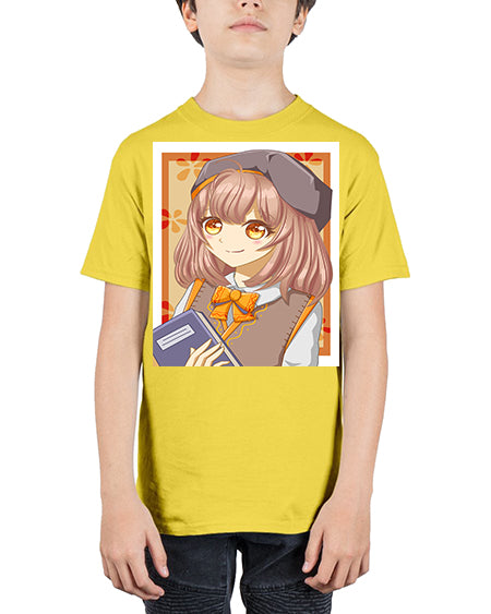 A beautiful girl wearing uniform with book 93# - anime - Youth Tee Unisex