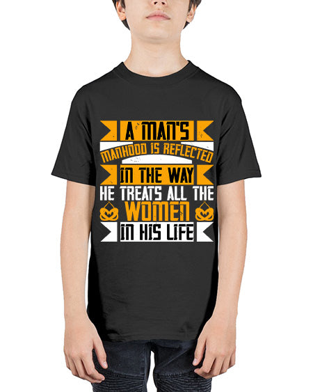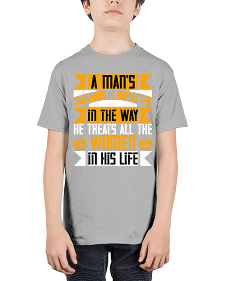 A man’s manhood is reflected in the way he treats all the women in his life Style 91# - womens day - Youth Tee Unisex