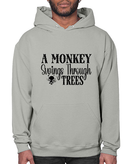 A monkey swings through trees - monkey- Hoodie