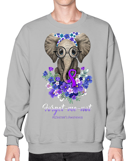 Forget me not Alzheimers Awareness Elephant Flower 150# - alzheimers- Sweatshirt - Crew