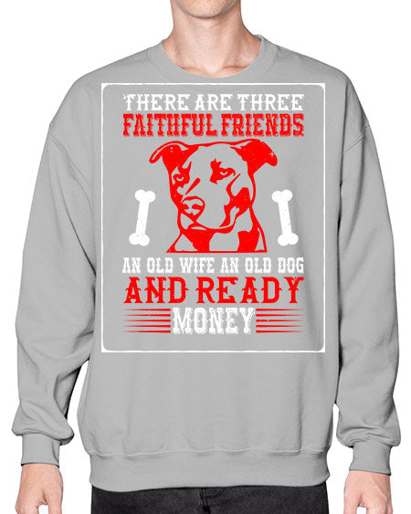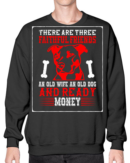 There are three faithful friends an old wife an old dog and ready money Style 146# - dogs- Sweatshirt - Crew