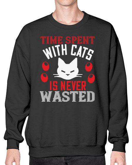 time spend with cat is never wasted Style 121# - cats- Sweatshirt - Crew