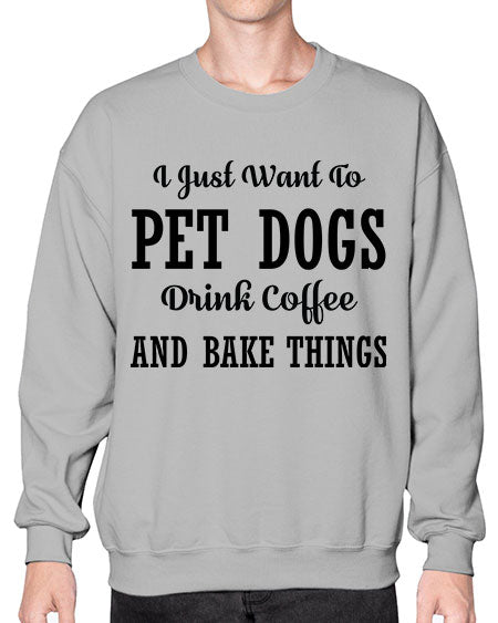 i just want to pet dogs drink coffee and bake things 163# - dogs- Sweatshirt - Crew