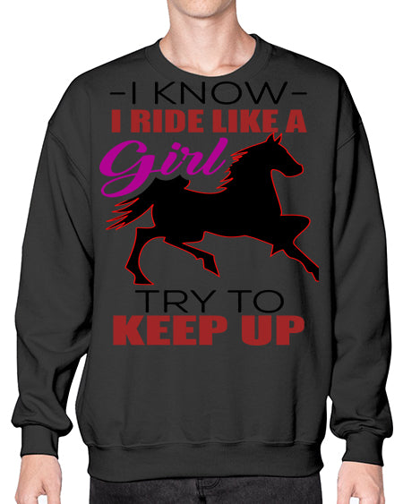 i kno i ride like a girl try to keep up - horse- Sweatshirt - Crew
