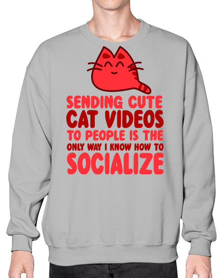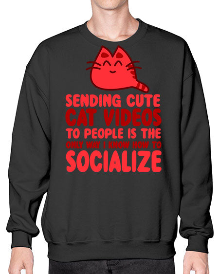 sending cute cat videos to people is the only way i know how to socialize - cats- Sweatshirt - Crew