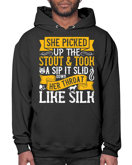 She picked up the stout and took a sip It slid down her throat like silk Style 25# - dogs- Hoodie