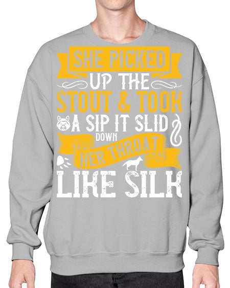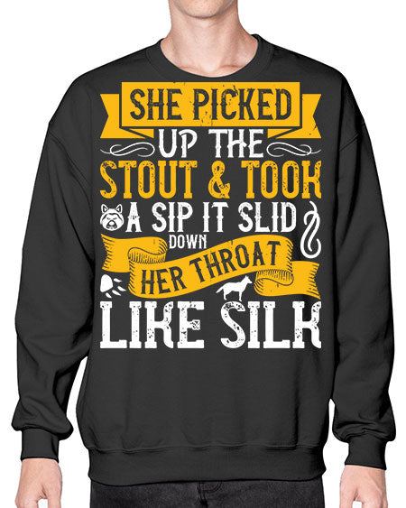 She picked up the stout and took a sip It slid down her throat like silk Style 25# - dogs- Sweatshirt - Crew