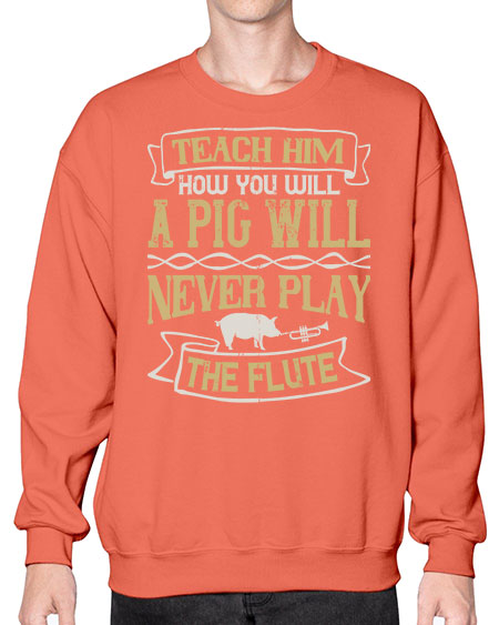 Teach him how you will a pig will never play the flutee Style 26# - pig- Sweatshirt - Crew