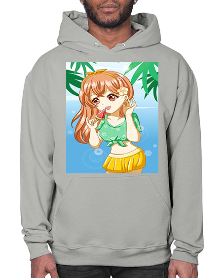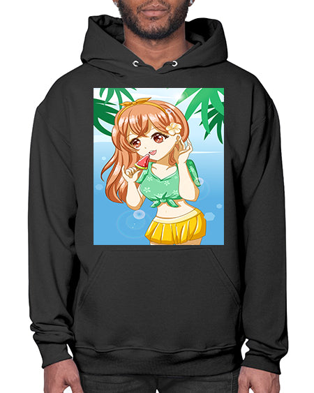 Cute and happy girl in beach with buoy in the summer 184# - anime- Hoodie