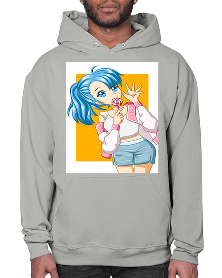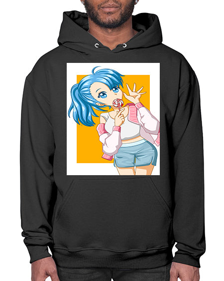 Cute and happy girl blue hair eating the lollipop 112# - anime- Hoodie