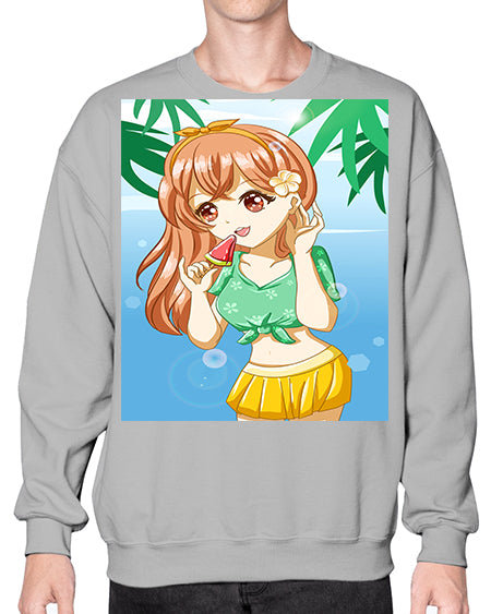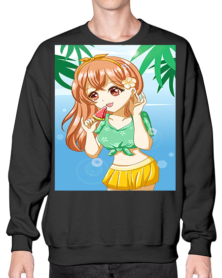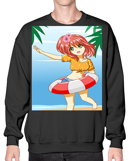 Cute and happy girl in beach with buoy in the summer 184# - anime- Sweatshirt - Crew