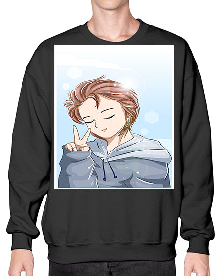 Cute boy brown hair with blue jacket 126# - anime- Sweatshirt - Crew