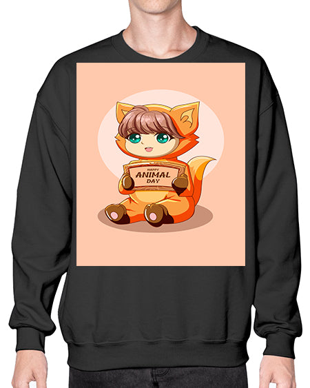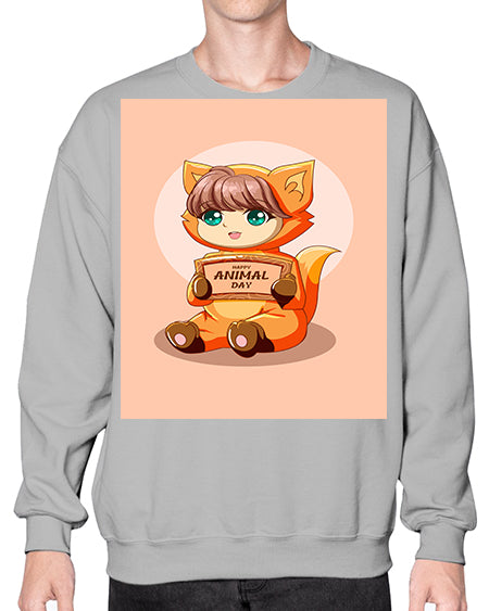Cute girl with animal costume in animal day text 137# - anime- Sweatshirt - Crew
