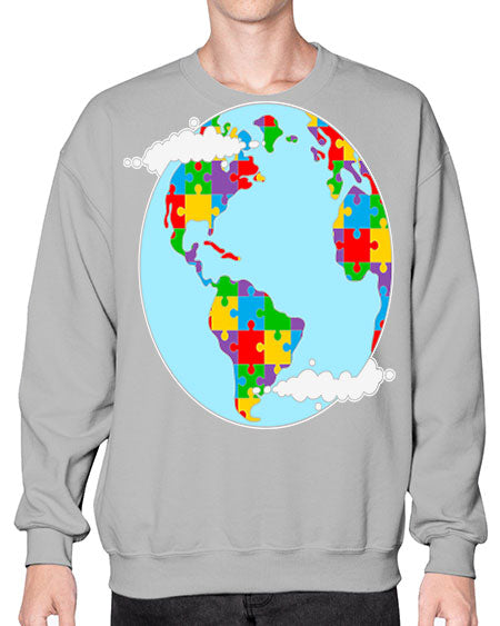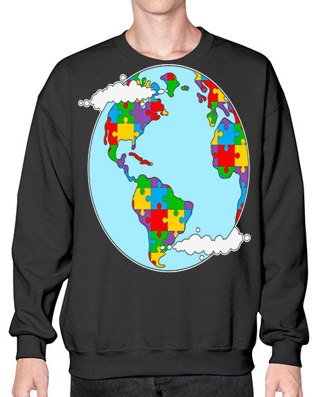 earth autism awareness heart puzzle 83# - autism- Sweatshirt - Crew