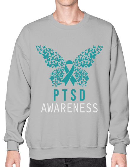 Butterfly PTSD Awareness Teal Ribbon 26# - PTSD- Sweatshirt - Crew
