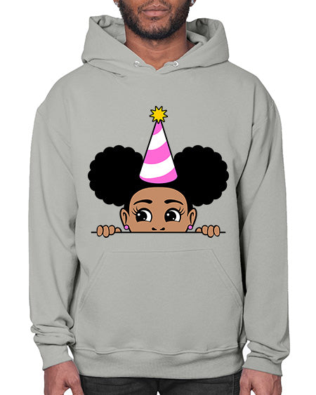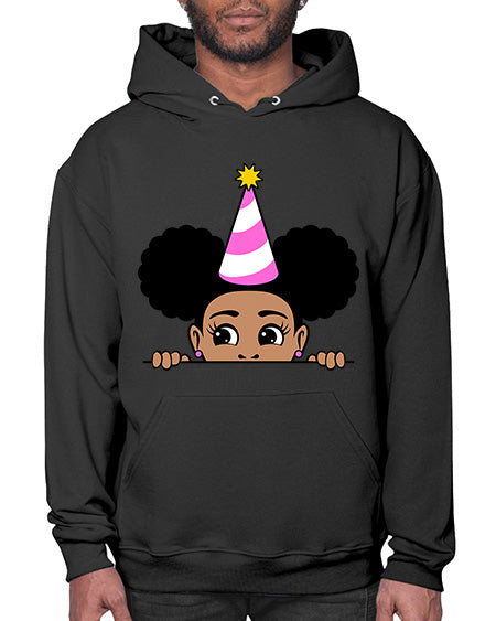 peekaboo afro puffs birthday girl 24# - black girls or women- Hoodie