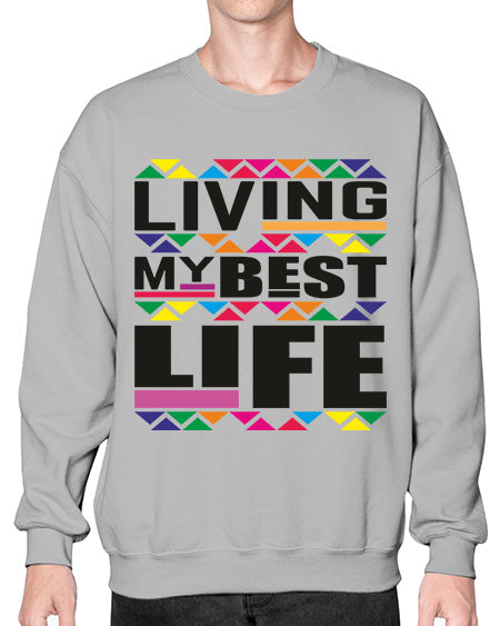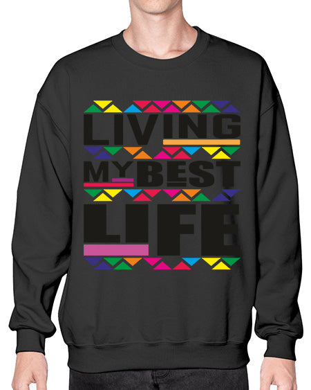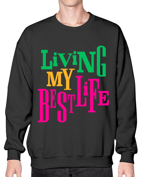living my best life 96# - black words and phrases- Sweatshirt - Crew