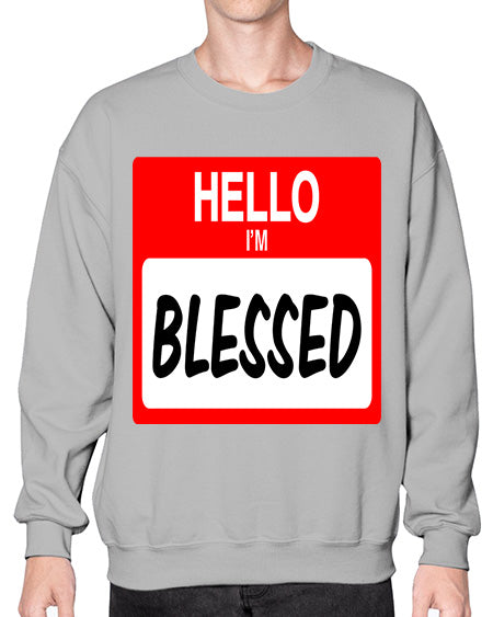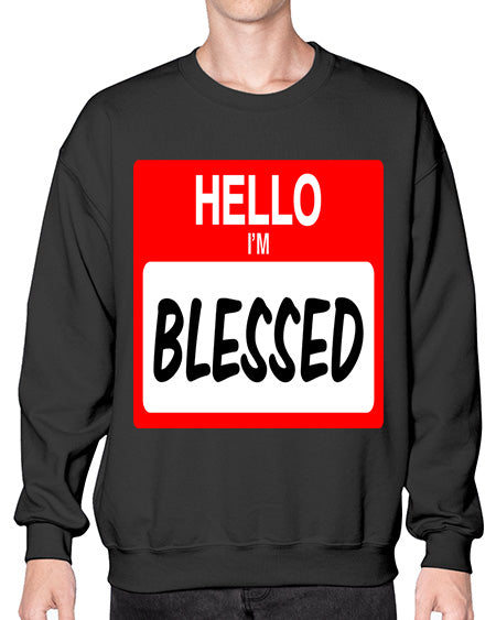 hello im blessed 133# - black words and phrases- Sweatshirt - Crew