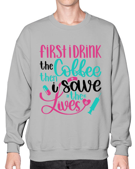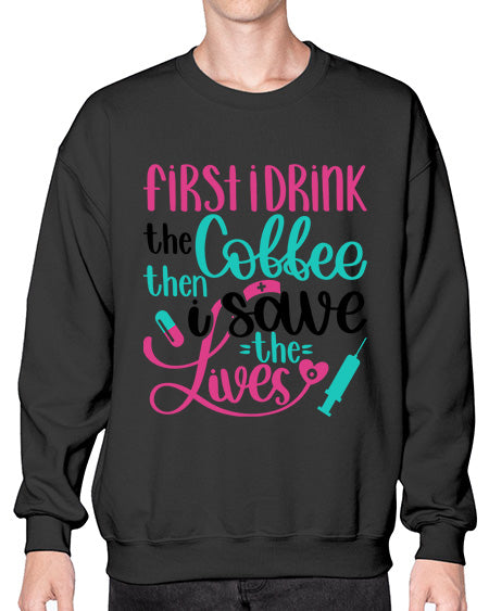 First I Drink The Coffe Style Style 798# - nurse- Sweatshirt - Crew