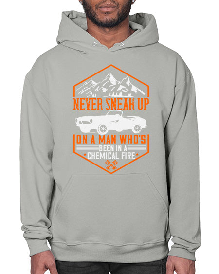 Never sneak up on a man whos been in a chemical fire 39# - hot rod- Hoodie
