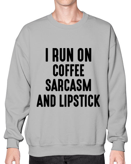 i run on coffee sarcasm and lipstick 1165# - coffee- Sweatshirt - Crew