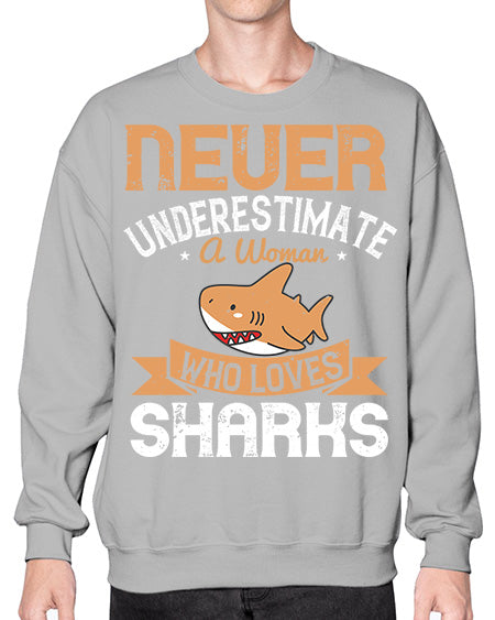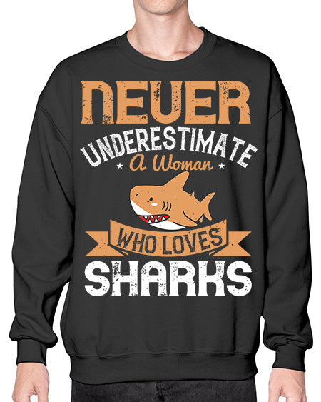 Never underestimate a woman who loves sharks Style 52# - shark-fish- Sweatshirt - Crew