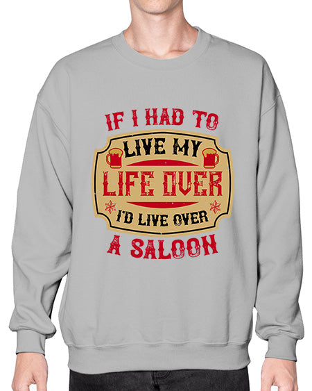 if i had to live my life over id live over a saloon 256# - drinking- Sweatshirt - Crew