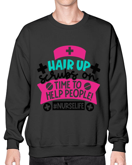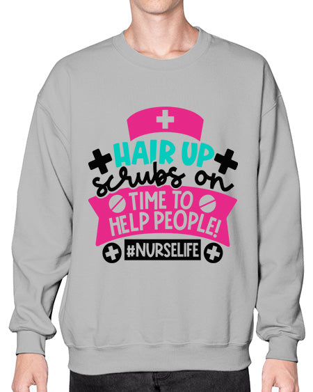 Hair Up Scrubs On Time To Help People Nurselife Style Style 827# - nurse- Sweatshirt - Crew