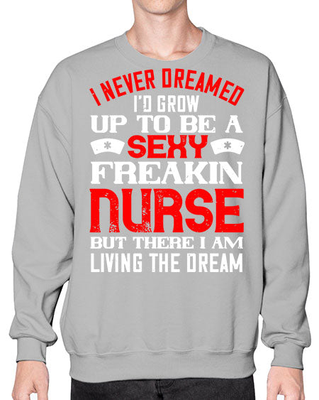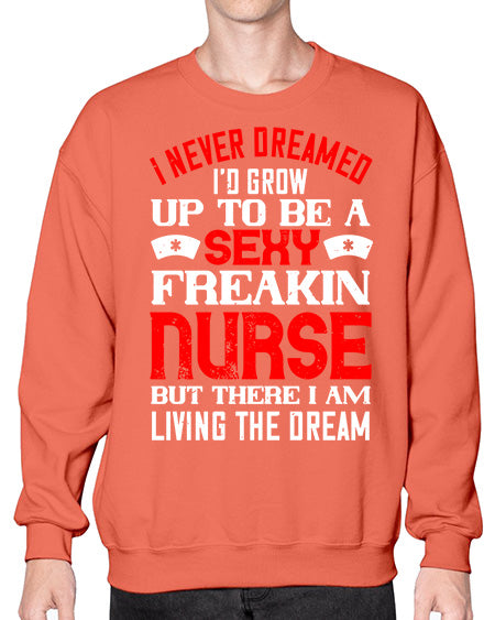 I never dreamed id grow up to be a sexy freakin nurse but there i am living the dream Style 913# - nurse- Sweatshirt - Crew
