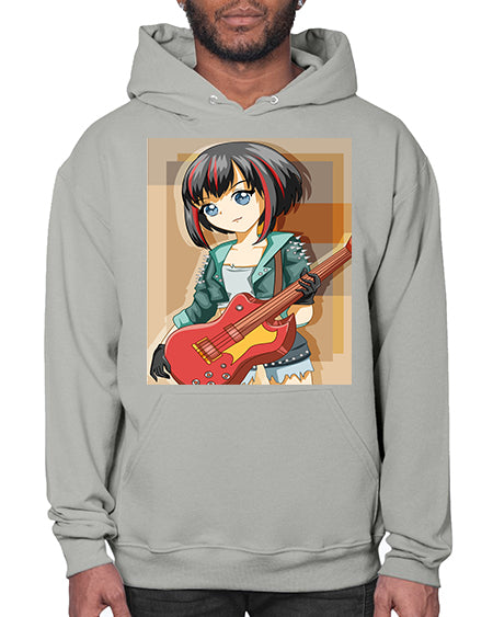 Beautiful rock girl with bass guitar perform 173# - anime- Hoodie