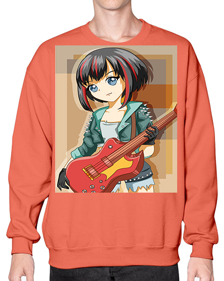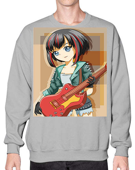 Beautiful rock girl with bass guitar perform 173# - anime- Sweatshirt - Crew