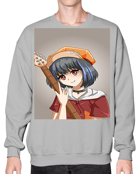 Cool and beautiful rockstar woman with guitar 8# - anime- Sweatshirt - Crew