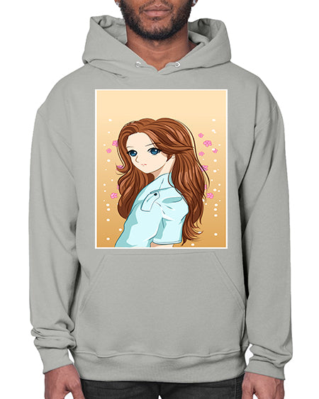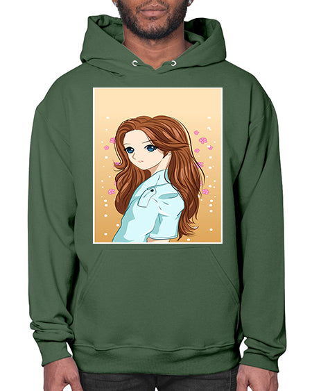 Beautiful and pretty girl brown long hair 123# - anime- Hoodie