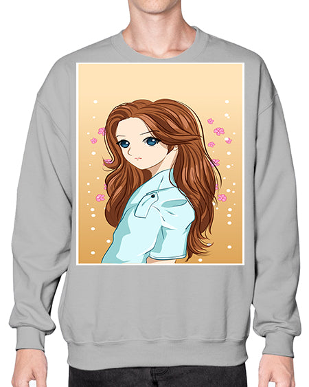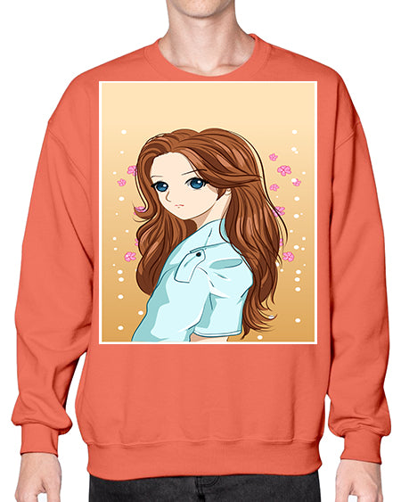 Beautiful and pretty girl brown long hair 123# - anime- Sweatshirt - Crew