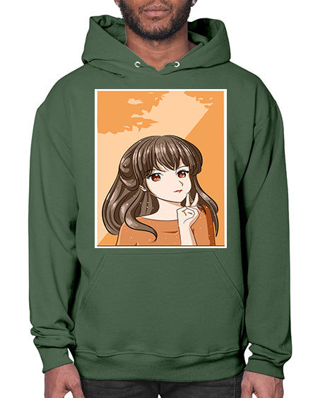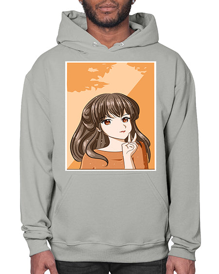 Beautiful and pretty girl long hair with orange background 100# - anime- Hoodie