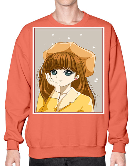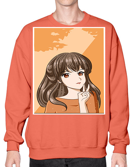 Beautiful and pretty girl long hair with orange background 100# - anime- Sweatshirt - Crew