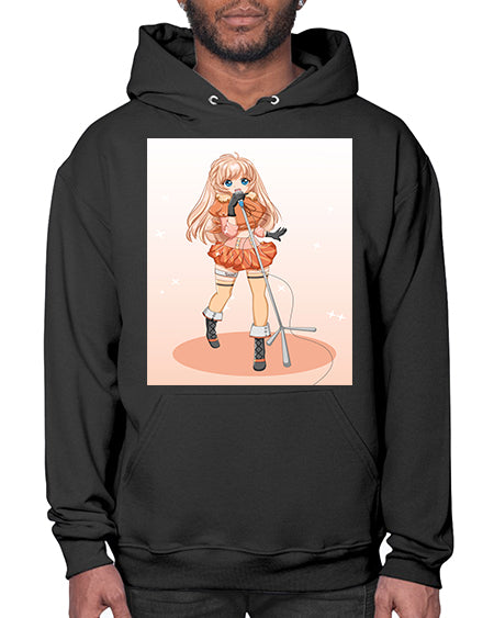 Happy and beautiful singer woman with microphone 160# - anime- Hoodie