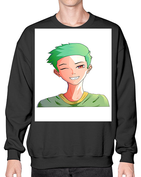 Handsome boy green hair wearing green shirt 35# - anime- Sweatshirt - Crew