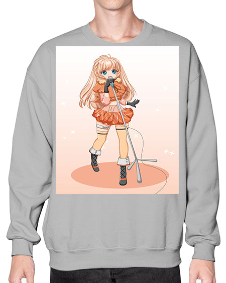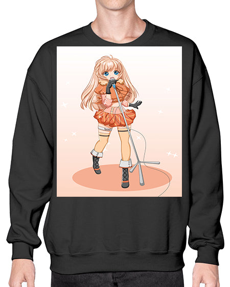 Happy and beautiful singer woman with microphone 160# - anime- Sweatshirt - Crew