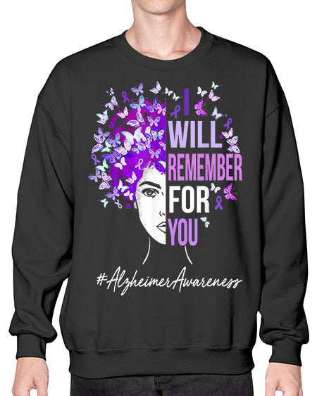 I Will Remember For You Alzheimer Awareness Womens Butterfly 180# - alzheimers- Hoodie