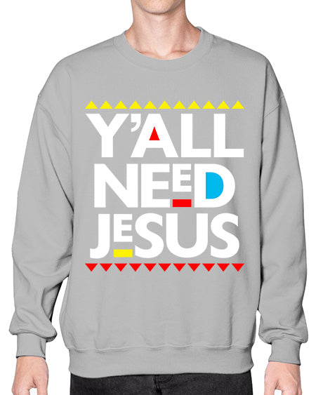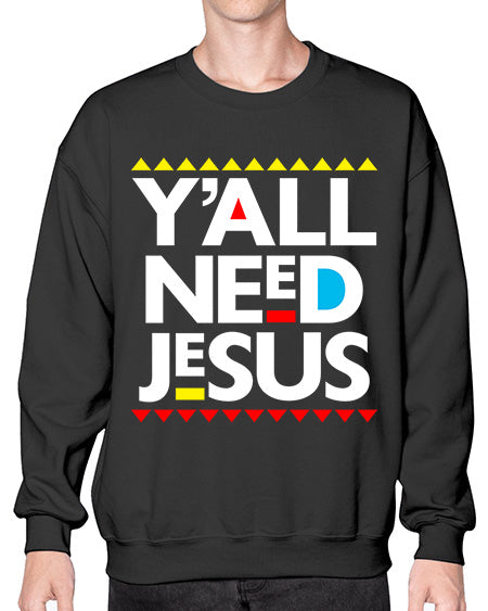 yall need jesus 4# - black words and phrases- Sweatshirt - Crew