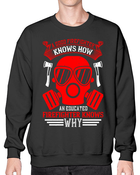 a good firefighter knows how an educated firefighter knows why 554# - fire fighter- Sweatshirt - Crew