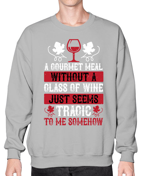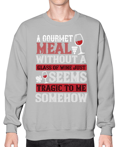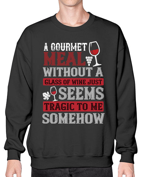 a gourmet meal without a glass of wine just seems tragic to me 528# - wine- Sweatshirt - Crew