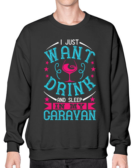i just want drink wine and sleep in my caravan 220# - wine- Sweatshirt - Crew