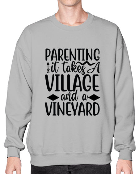 Parenting It Takes A Village And A Vineyard 1472# - wine- Sweatshirt - Crew