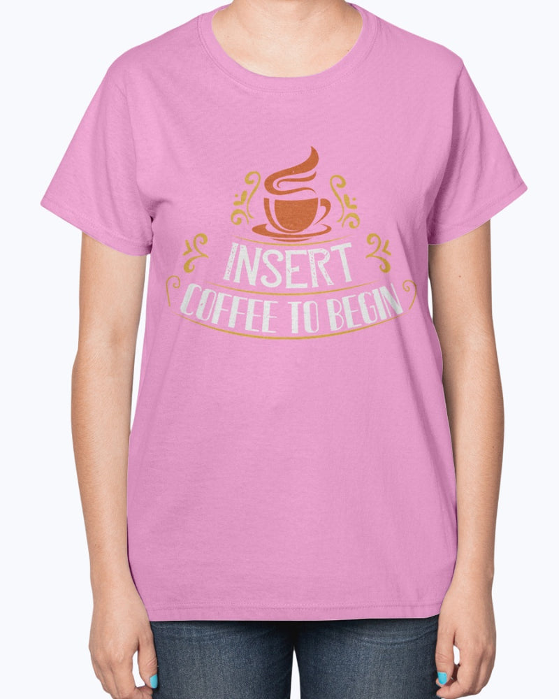 Insert Coffee to Begin- Coffee- Ladies T-Shirt