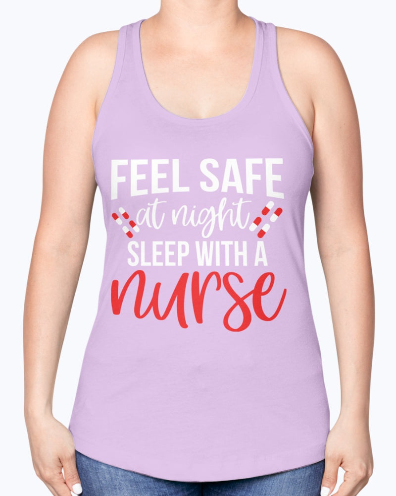 Feel Safe at night sleep with a Nurse - Nurse - Racerback Tank