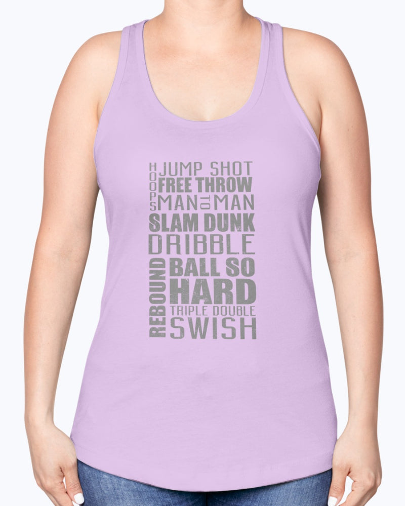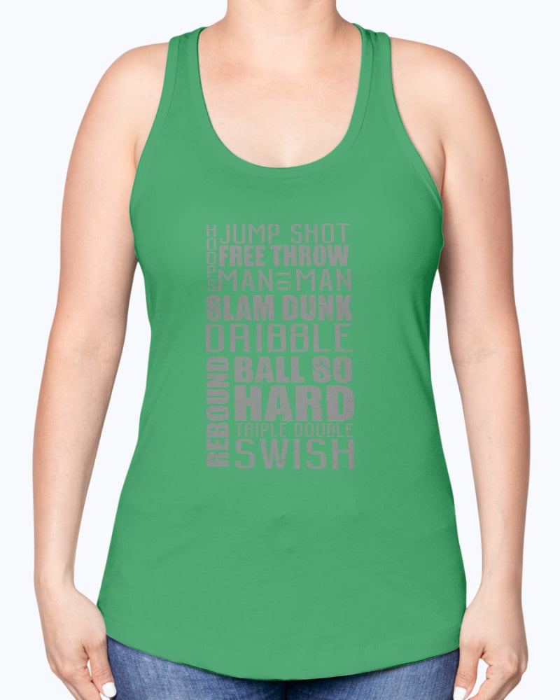 Jump, freethrow, dribble, Basketball Jargon - Sports- Racerback Tank